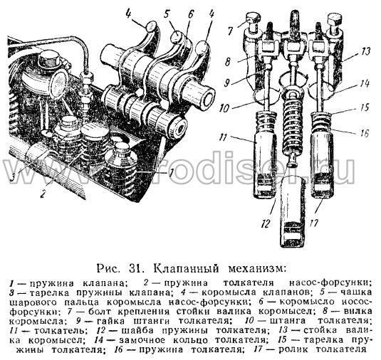 4) наличие уравновешивающего механизма. Кроме того, особенностью двигателей является установка насосов высокого давления и форсунок, выполненных вместе в компактных агрегатах (насос-форсунка), которые установлены в головке блока цилиндров по оси каждого цилиндра.