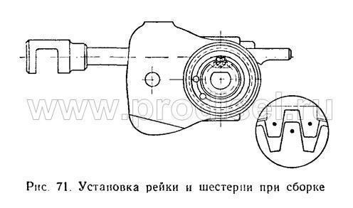 5. При сборке приводного механизма двигателя шестерни следует совмещать по меткам, как показано на рис. 25.