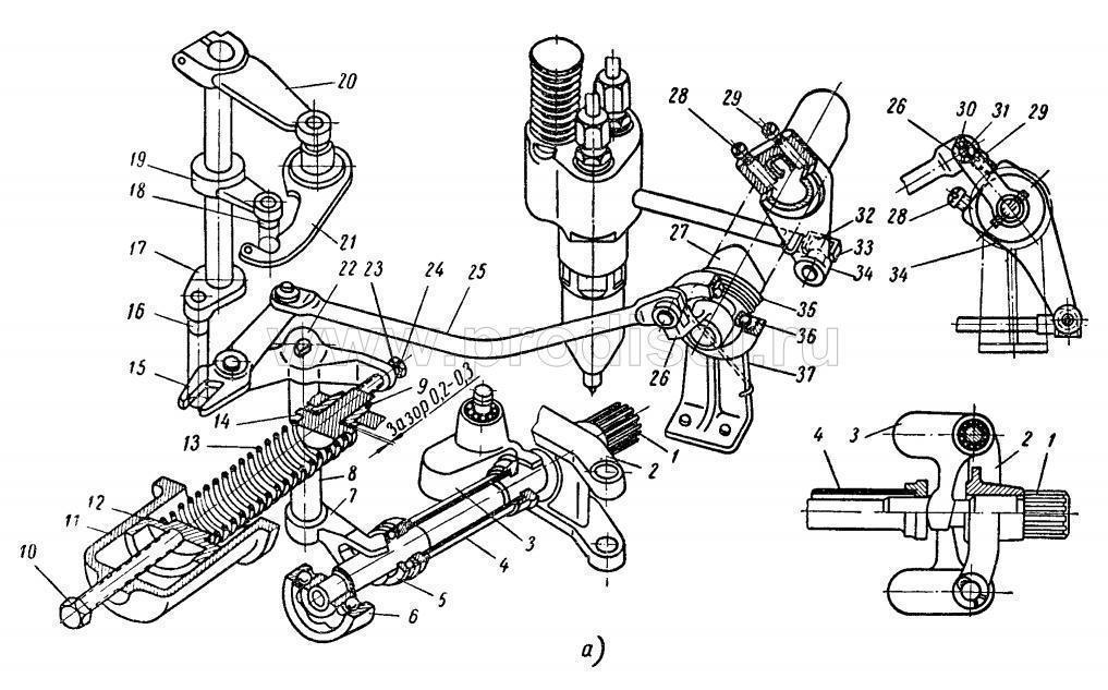 Зазор между зубьями шестерен распределения в торцовом сечении (на новом двигателе) — 0,07 —0,22 5 4
